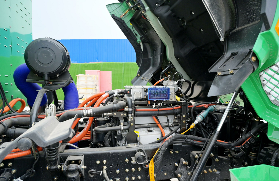 康明斯HD120氢燃料电池发动机系统额定功率125kW,电堆功率密度达3.5kW/L,发动机系统峰值效率可达60%,额定功率点效率42%。依托康明斯及陕汽丰富的渣土车市场应用经验,HD120氢燃料电池发动机系统针对渣土车特殊应用工况不断进行优化改善系统控制策略,进一步提高系统电效率和氢气有效利用率。