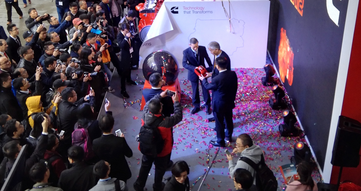 2016年11月22日,随着满足中国及欧美非道路第四阶段排放标准并具备EU Stage V升级能力的全新QSG12升动力在全场嘉宾见证下闪亮登场,康明斯在中国国际工程机械盛会——上海Bauma展首次全线展示了满足中国及欧美非道路第四阶段排放的智能电控系列发动机及核心零部件。